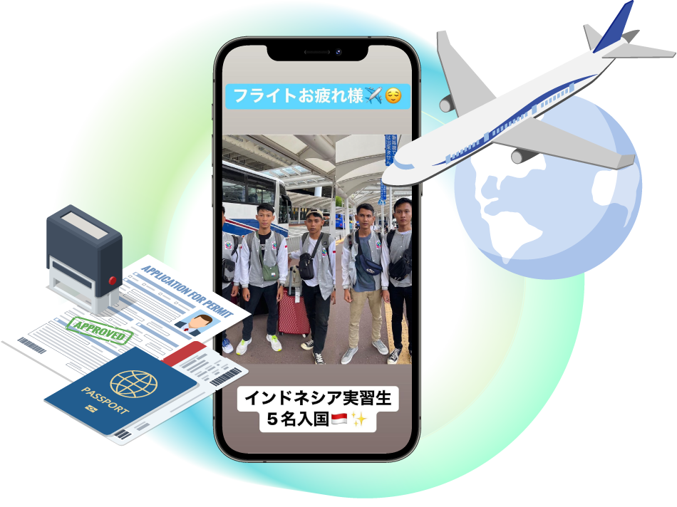 書類作成、⼊国⼿続きを弊組合が責任を持って迅速に⾏います。
