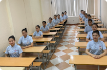 ⼊国後は必ず1ヶ⽉間、講習センターにて⽇本語や労働安全教育、法的保護などを勉強します。ここで「現場で使える日本語」や日本のルールやマナーを学んでもらうことで、就労後のトラブルを未然に防ぎます。