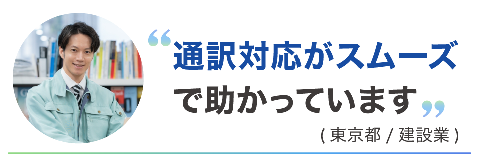 現場の状況を理解したうえで通訳してもらえるので、言葉だけでなく意図まで伝わりやすく、やり取りがとてもスムーズになりました。